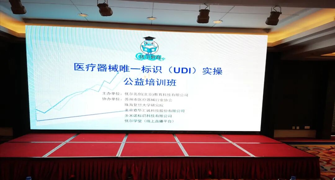 2020年9月14日,由优尔名创(北京)教育科技有限公司主办,苏州市医疗器械行业协会、珠海复旦大学研究院、北京嘉华汇诚科技股份有限公司、多米诺标识科技有限公司协办的“医疗器械唯一标识(UDI)实操公益培训班”在苏州工业园区金鸡湖新罗大酒店成功召开!来自全国各地的200多名企业代表参加了此次培训,GS1江苏分中心、珠海复旦大学研究院、北京嘉华汇诚科技股份有限公司、多米诺标识科技有限公司领导及各位专家出席会议并做了精彩演讲。