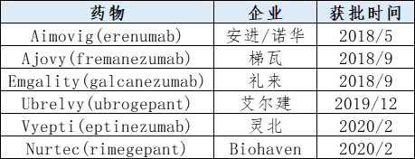 这一发现让CGRP信号通路成为治疗偏头痛的热门靶点,目前全球范围内已经有多款CGRP受体或CGRP本身的抗体类疗法获批上市,用于偏头痛的预防治疗,包括erenumab-aooe、fremanezumab-vfrm、galcanezumab-gnlm等。
