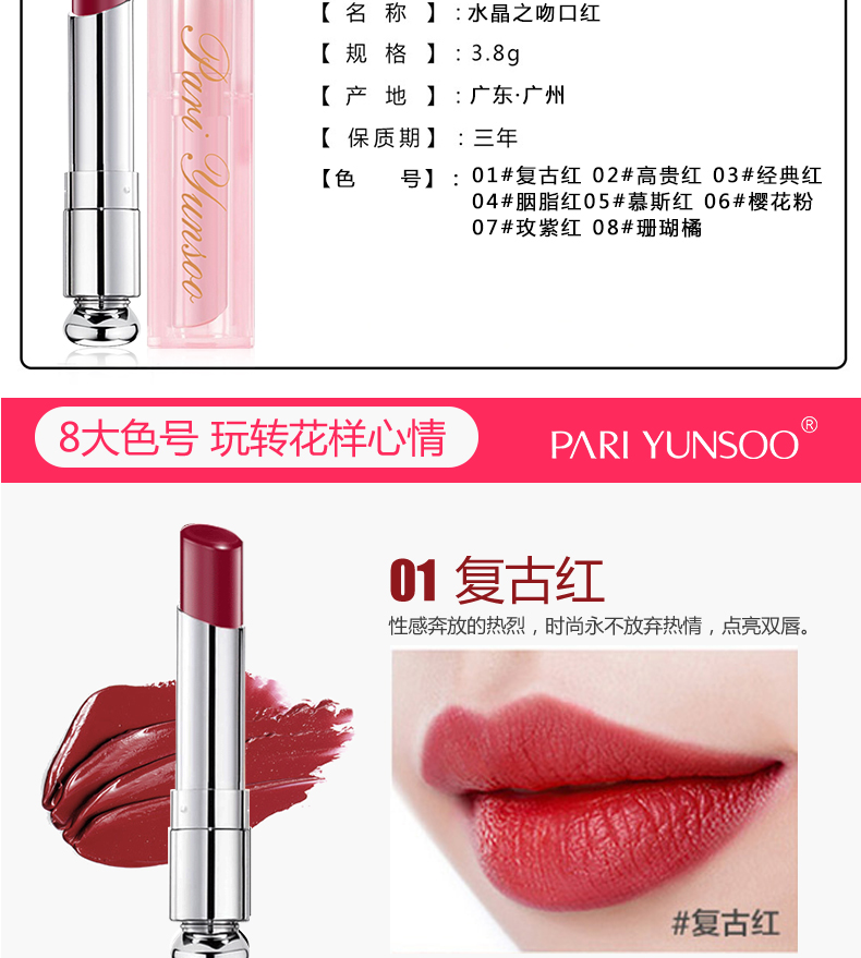 芭黎元素水晶之吻口红不掉色不沾杯